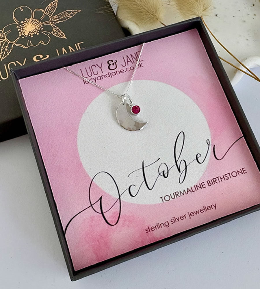 Treat someone special to this handmade sterling silver hammered moon birthstone necklace – the perfect keepsake gift!