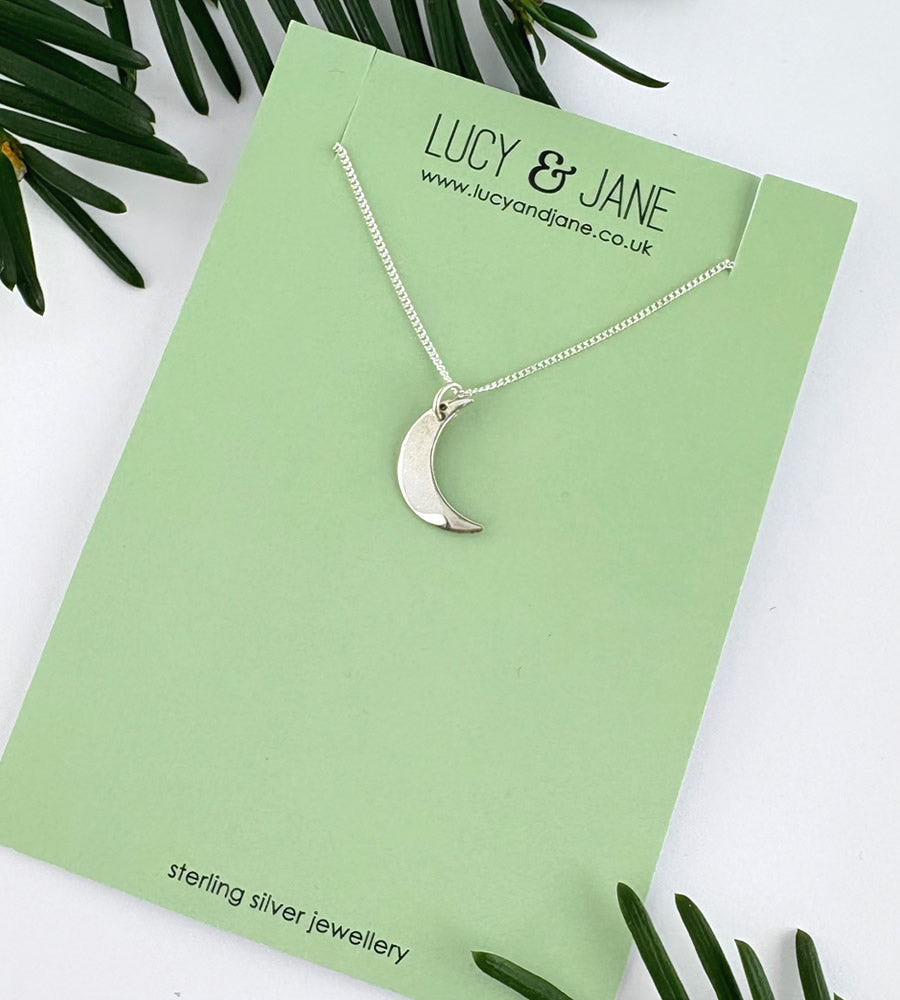 Slimmer than my usual crescent moon necklaces but made from the same high quality recycled sterling silver and gently hammered so it catches the light when you move.