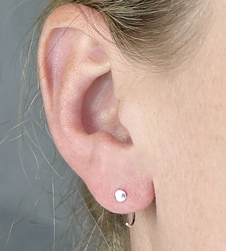 Easy to wear pull through earrings - put the post through your piercing and move around until the dot sits flat against your lobe.