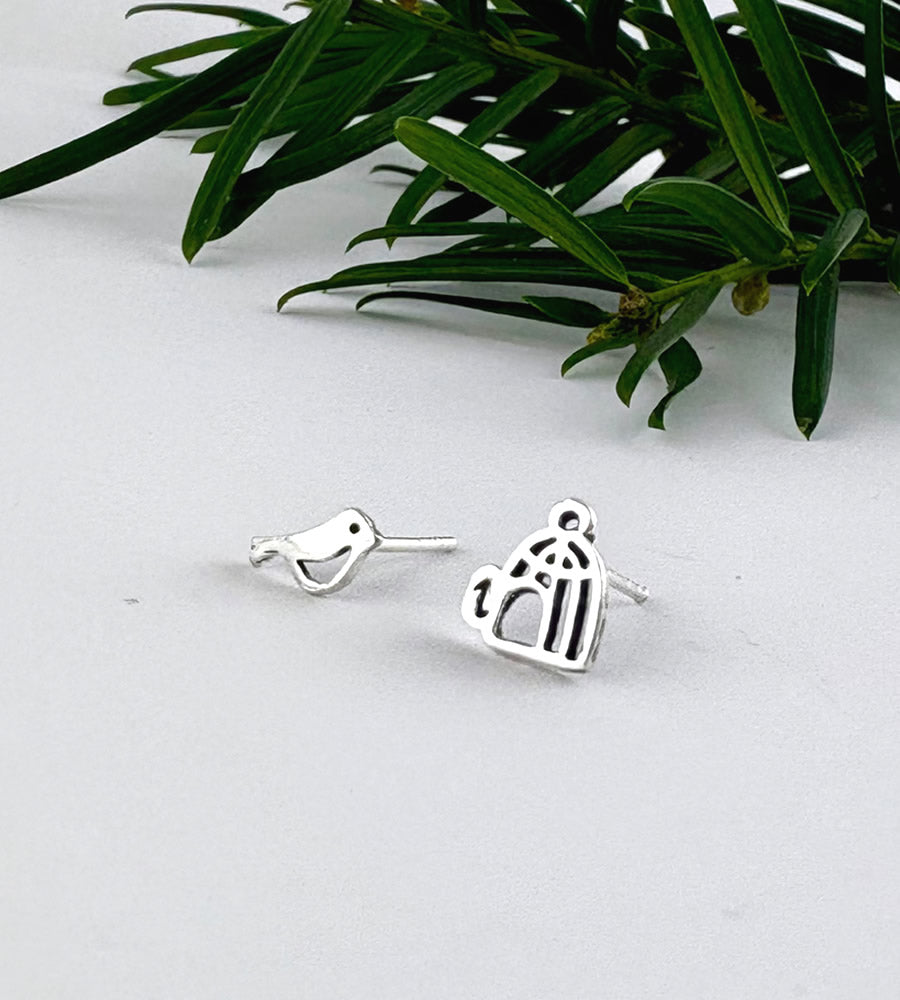 Mismatched earrings are a trend that's here to stay and one that I love! These sterling silver mismatched bird and cage earrings are a fun combination.