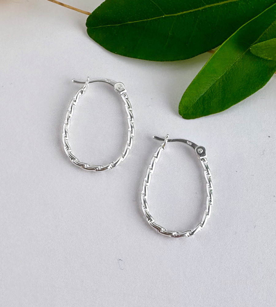 New sterling silver twist hoops in a modern oval shape.